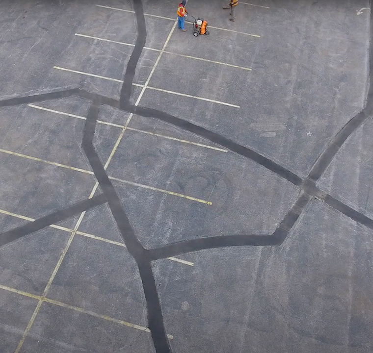 We use a hot-applied sealant in our asphalt crack repair process. This flexible material expands and contracts with the pavement, sealing out water and preventing cracks from spreading.